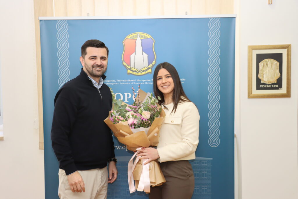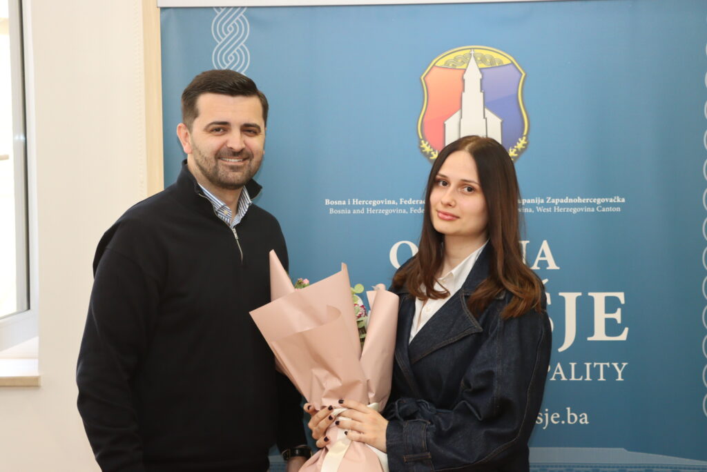 Na temelju Javnog poziva upućenog dobitnicima rektorove i dekanove nagrade za akademsku 2024./25, kojeg je Općina Posušje raspisala u siječnju ove godine, danas je u uredu načelnika upriličen prijem za pet dobitnica i dobitnika: Leonu Čamber, studenticu Akademije likovnih umjetnosti Široki Brijeg, Luku Oreča, Fakulteta građevinarstva i geodezije u Mostaru, Ivanu Leko, studenticu informatike na FPMOZ u Mostaru, Petru Mikulić, studenticu forenzike u Splitu te Mariju Buntić, studenticu Pravnog fakulteta Sveučilišta u Mostaru.